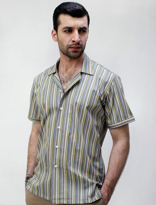 BARCODE STRIPES HALF SLEEVES SHIRTBarcode stripes shirt featuring lapel collar pair it with your formal pants.Premium cotton fabric Lapel collar Half Sleeves Classic white buttons