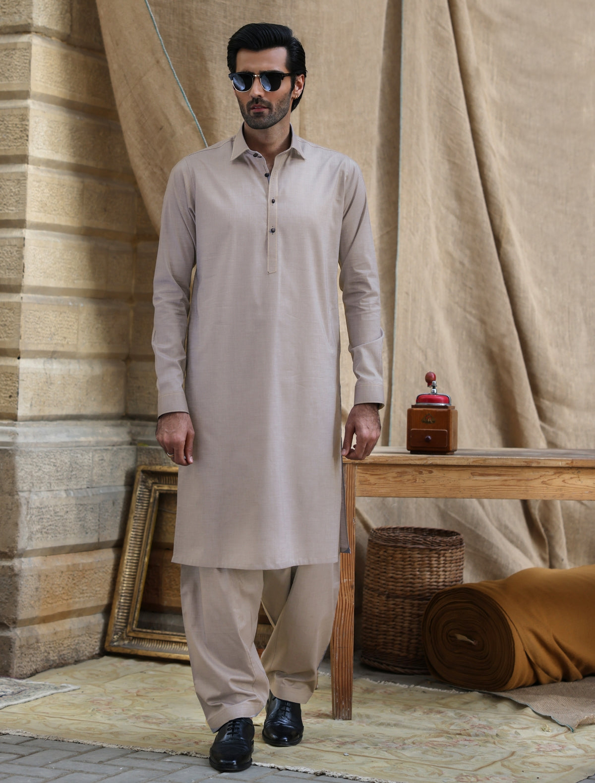 BEIGE COTTON TWILL KAMEEZ SHALWAR