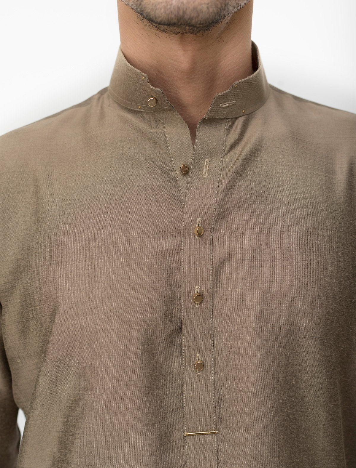 BEIGE METALLIC COTTON SILK KURTA PAJAMA