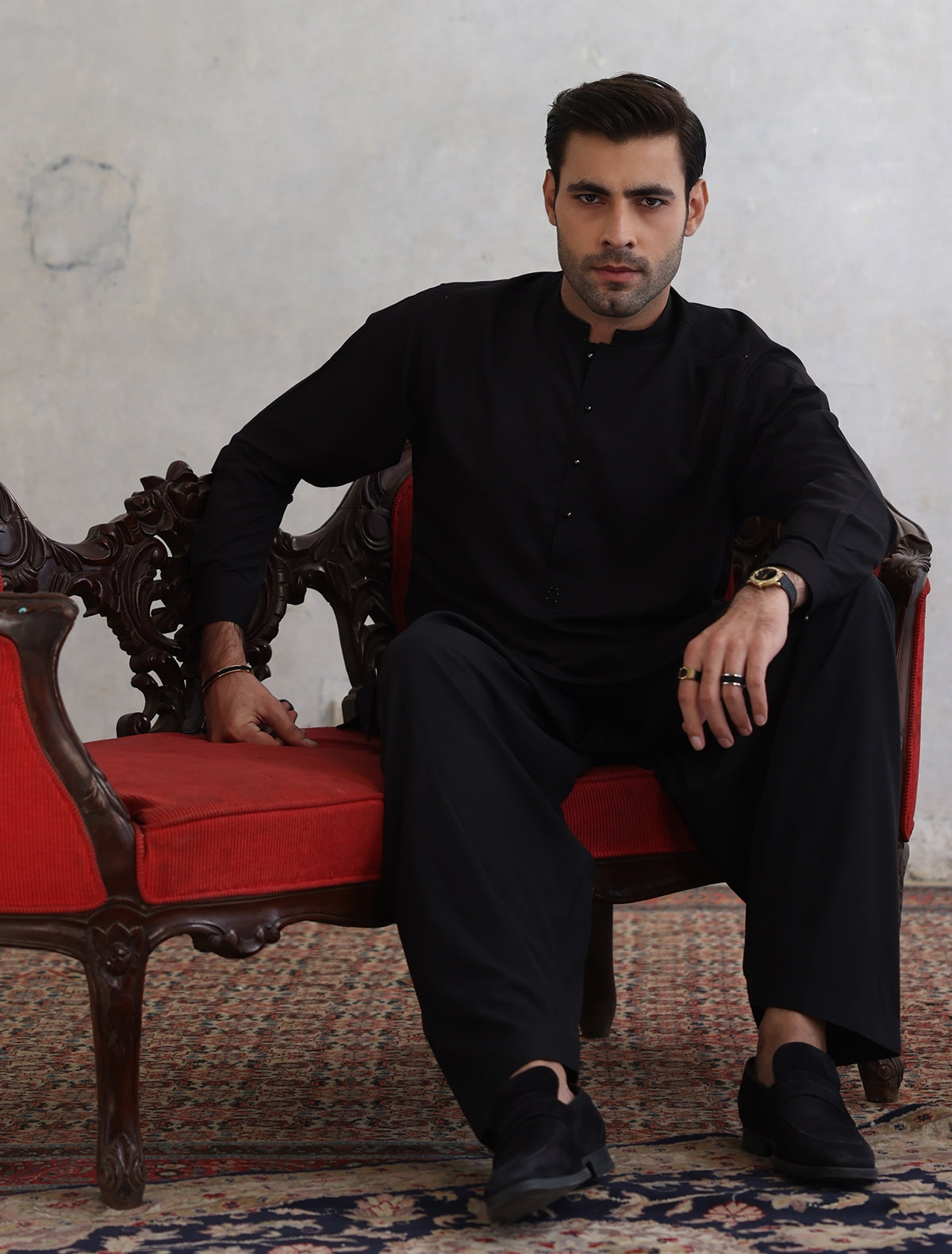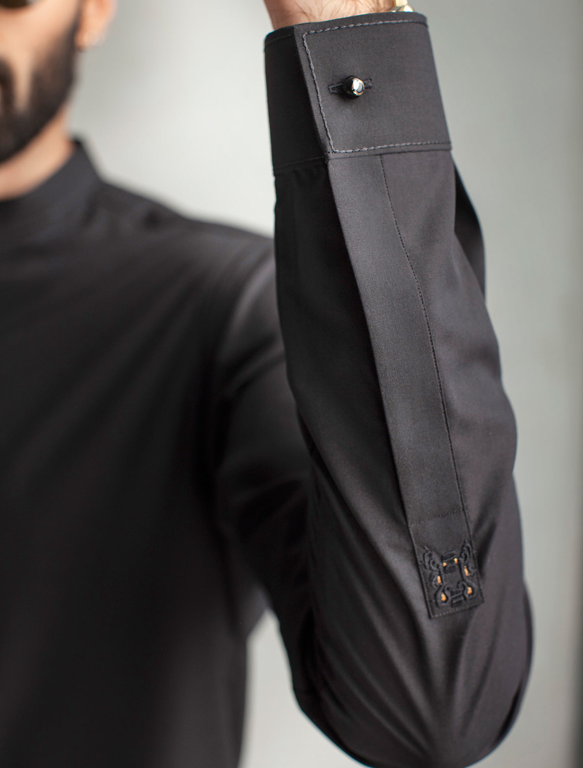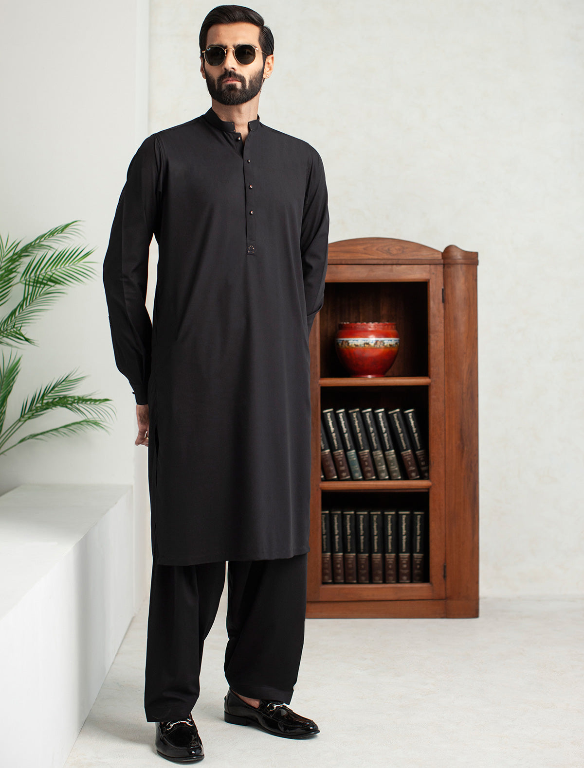 BLACK MANDARIN COLLAR KAMEEZ SHALWAR