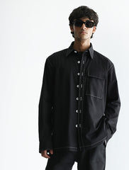 BLACK PICK STITCHED LOOSE FIT COTTON SHIRT