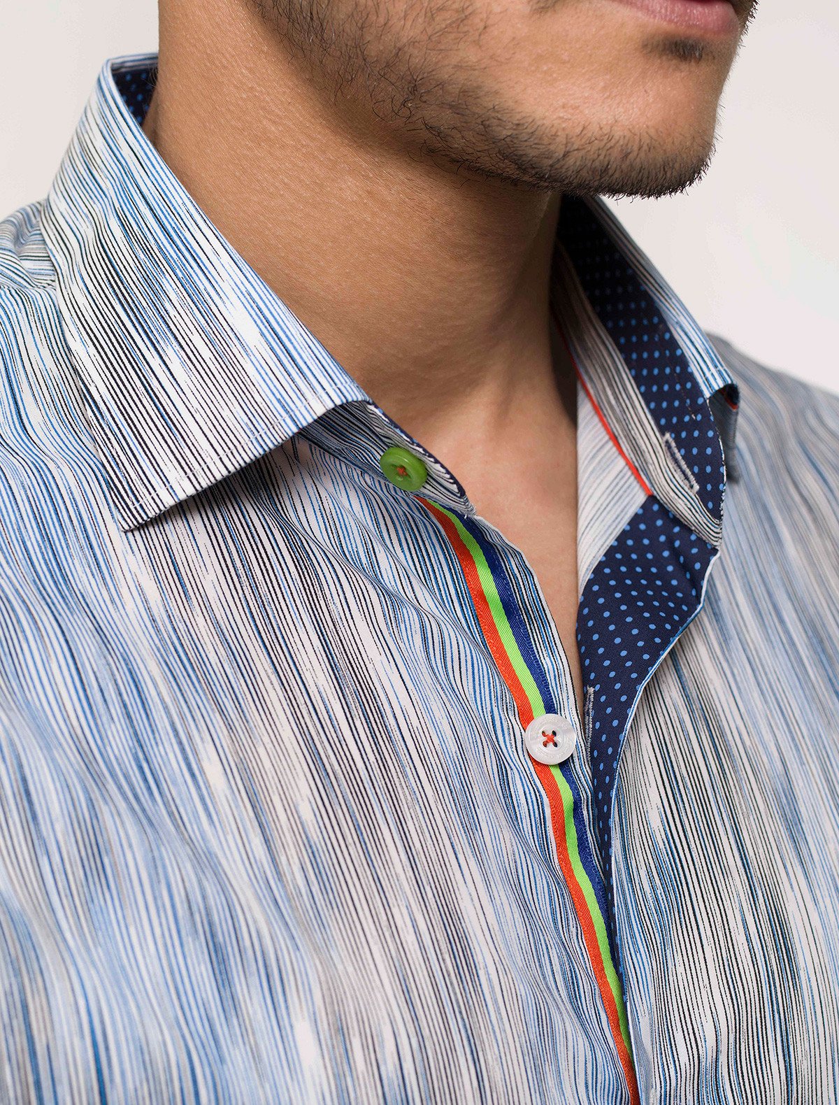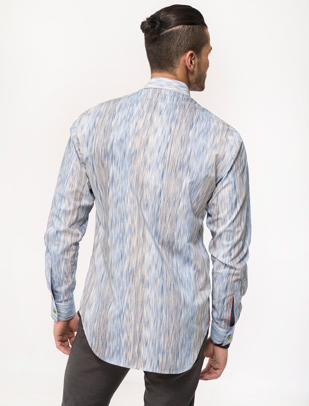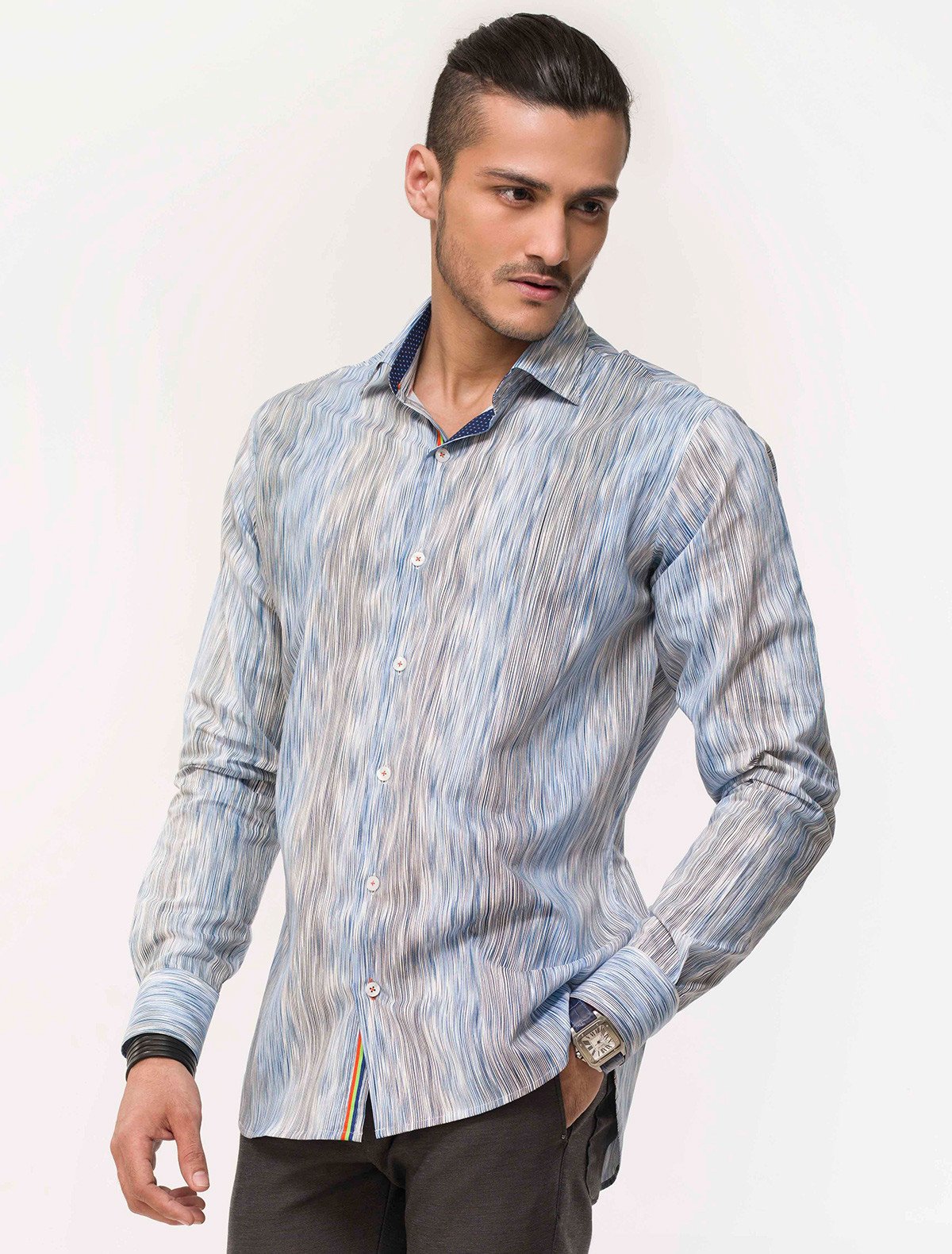 White floral shirt with blue and black brush stoke effect print for the modern and stylish men.