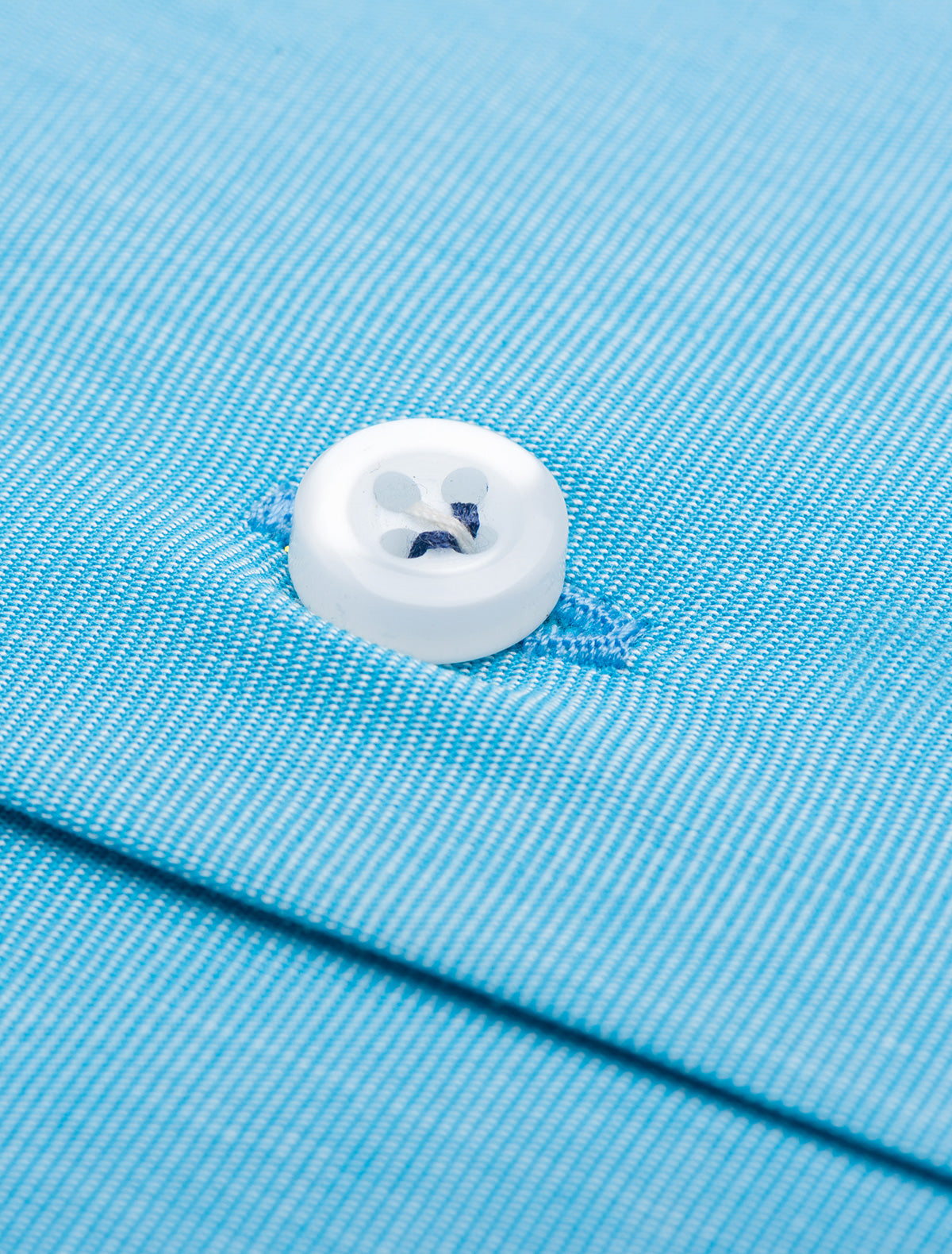 Add color to your wardrobe with this well-tailored light blue cotton shirt featuring a classic collar and inner white and navy details