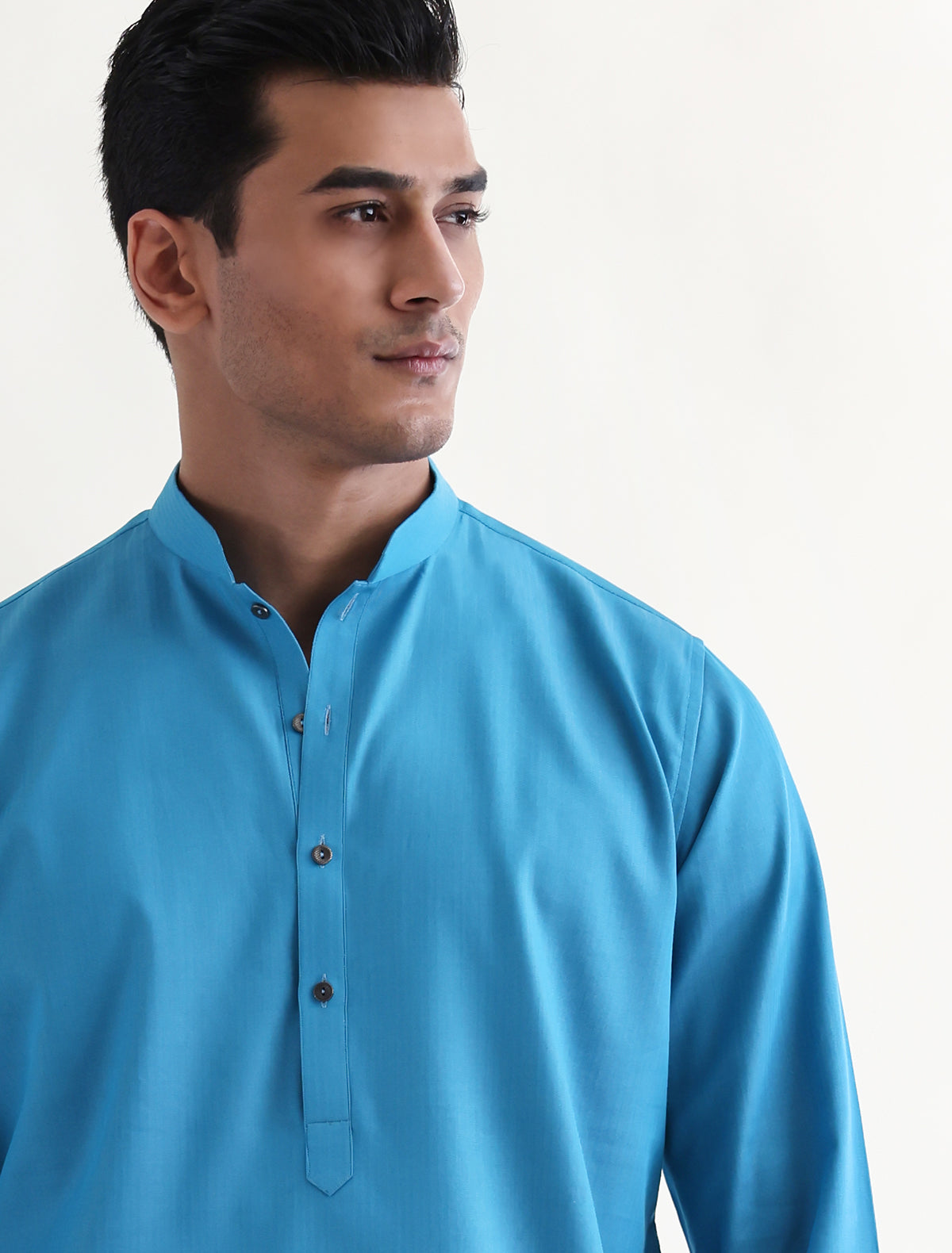 TURQUOISE SELF-STRIPE COTTON KURTA