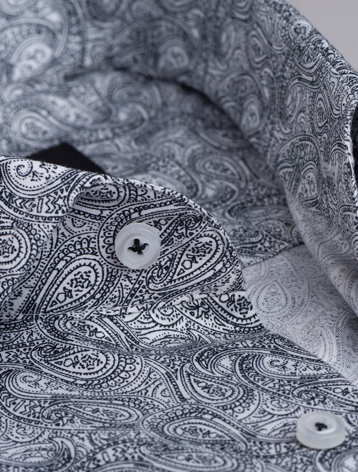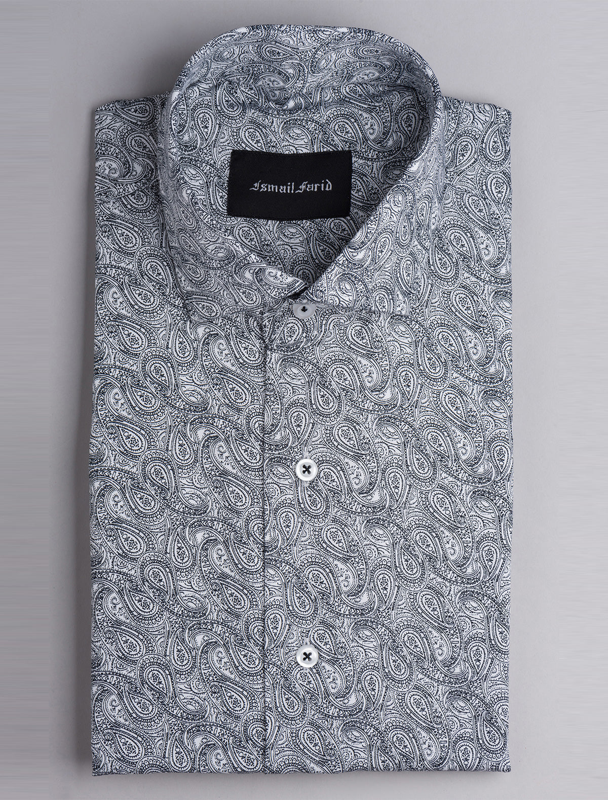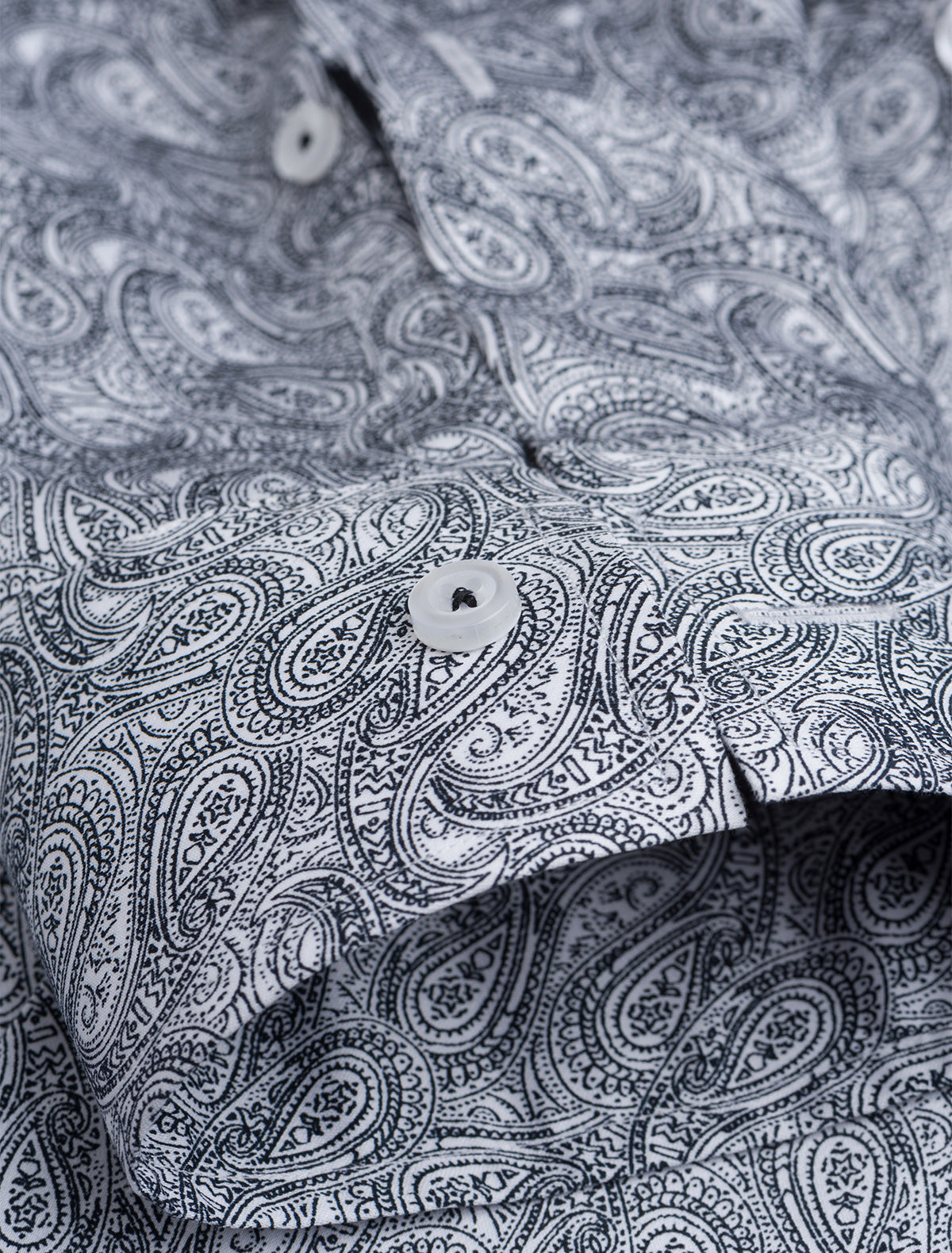 White floral shirt featuring paisley print. Team it with your blue rugged Jeans.