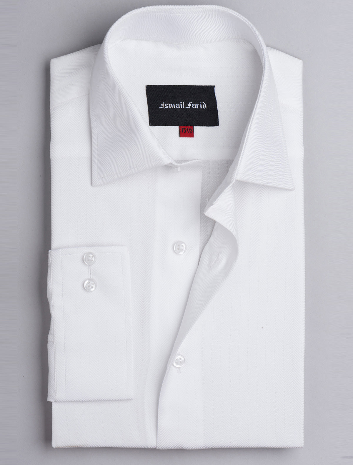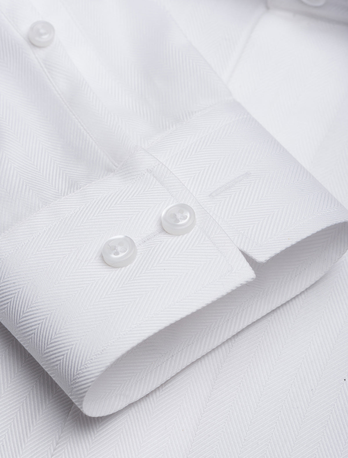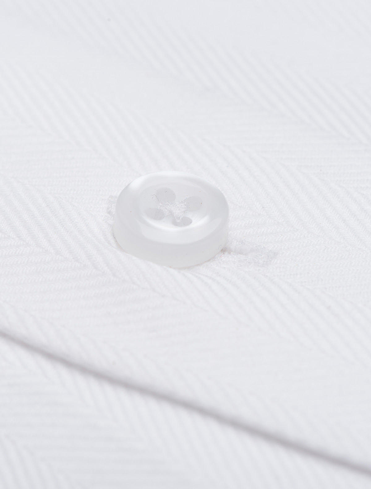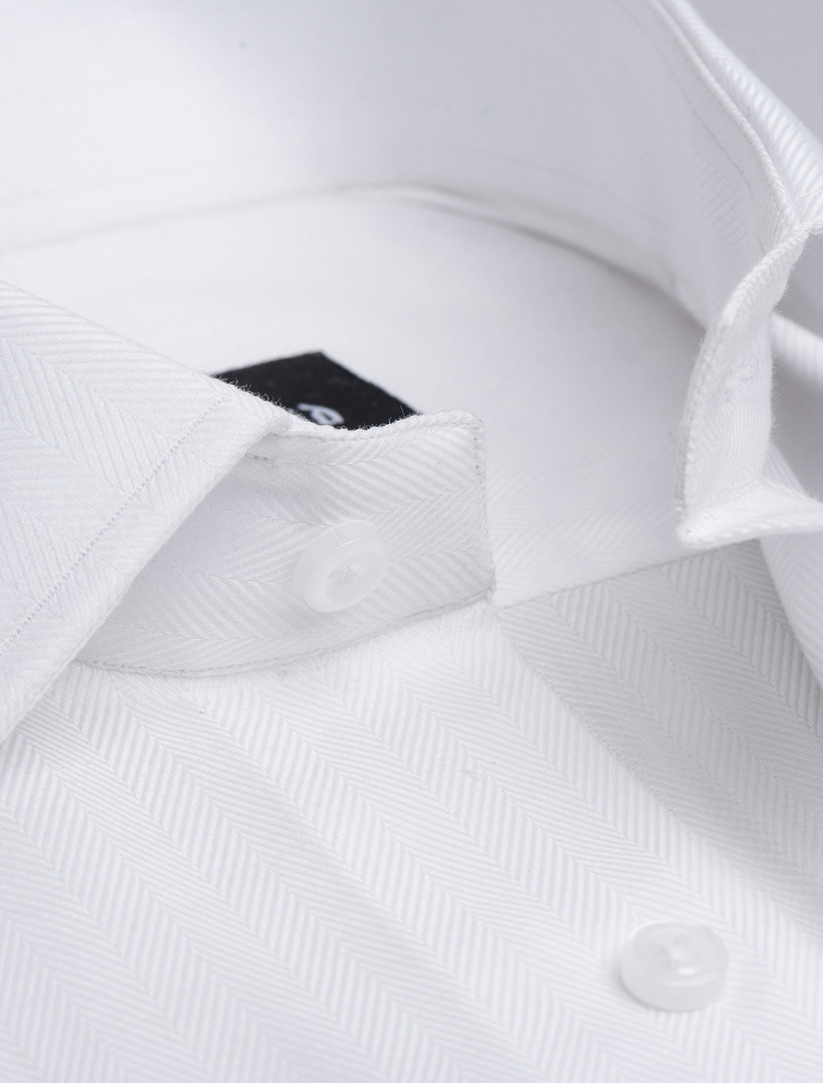 A well-tailored white Egyptian herringbone weave shirt featuring a classic collar and finished with high quality details