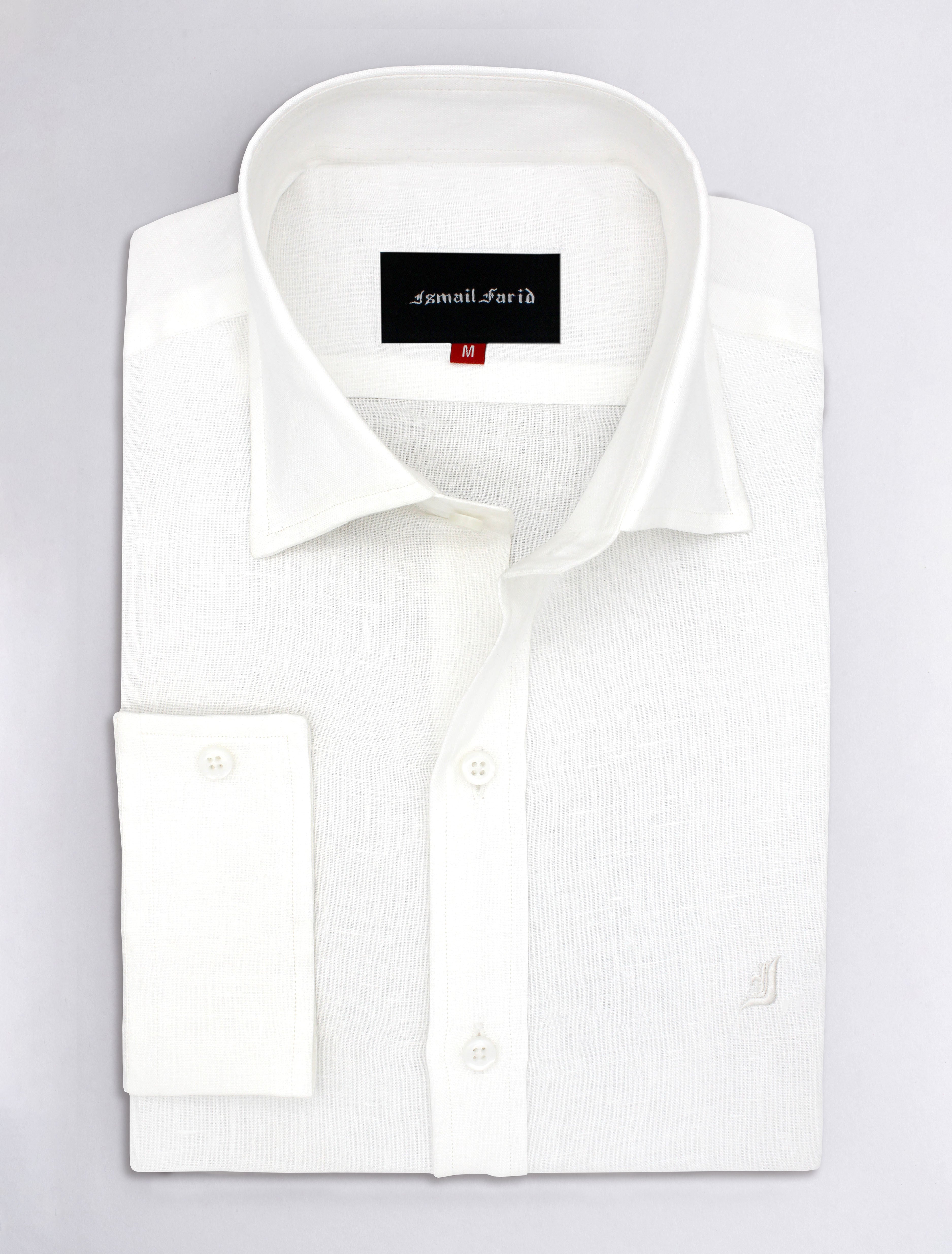 White shirt crafted with premium linen and Ismail Farid embroidered logo in front