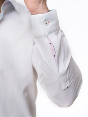 Crisp white shirt with floral printed collar is an essential for any summer wardrobe.