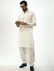 WhiteKameez Shalwar withan innovativethread detail on collar and cuff. For those who prefer a bit of detail.